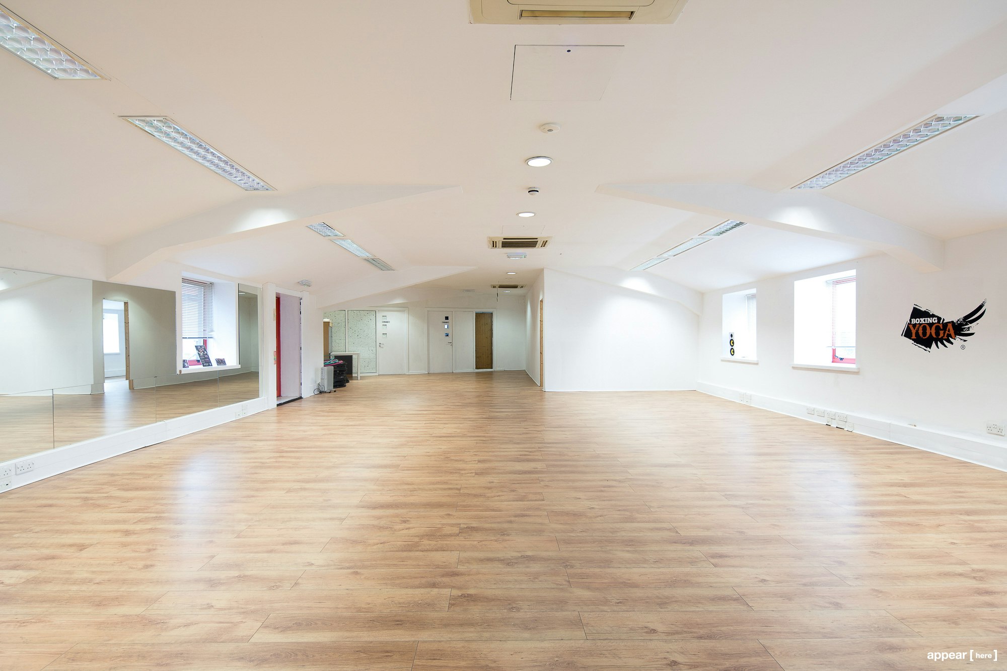 This yoga studio – just off Tottenham Lane – is not far from the train station, and has plenty of interesting neighbours. As Hornsey’s star continues to rise, enjoy the company of a local CrossFit gym, boxing studio, family friendly café and an Indian restaurant. The building is down a driveway, slightly away from the main road, with an industrial style entrance. On the second floor of the building you'll find this spacious venue, currently used as a yoga studio but open to any kind of idea. Bring your idea to life in this brightly lit open room with high ceilings. Bring your fitness, event or other big idea here now – whether for a one off launch or as a regular gig. Hornsey train station is less than a minute’s walk away.