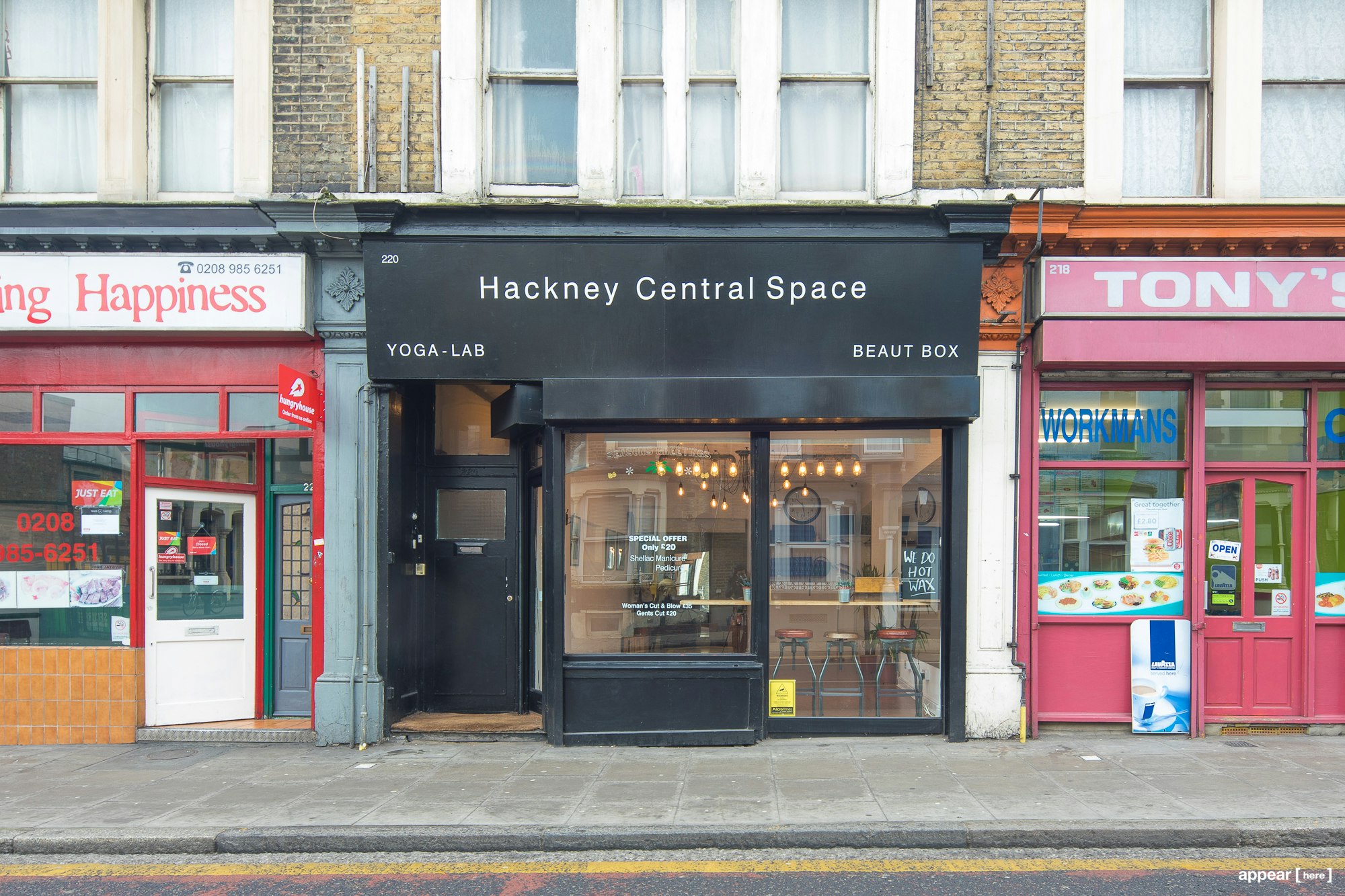 Graham Road sits within metres of Hackney Central station, near the likes of Oslo club and Hackney Empire. As well as being in the heart of the borough, Graham Road mixes rows of flats with local high street shops. You'll feel a part of the community from the moment you move in. This space usually runs as a part yoga studio, part beauty salon. From Tuesday to Saturday, it's available as a shop share. On Sundays, Mondays and evenings, it's available as a full takeover for complementary brands. You'll have access to the sleek ground floor space, which has a separate area at the back, that can either be open plan or hidden. Downstairs, the basement has two rooms and can be used for storage or consultations. Think classes, product launches and other experiential ideas. Other neighbours will include The Cock Tavern and Paper Dress Vintage.