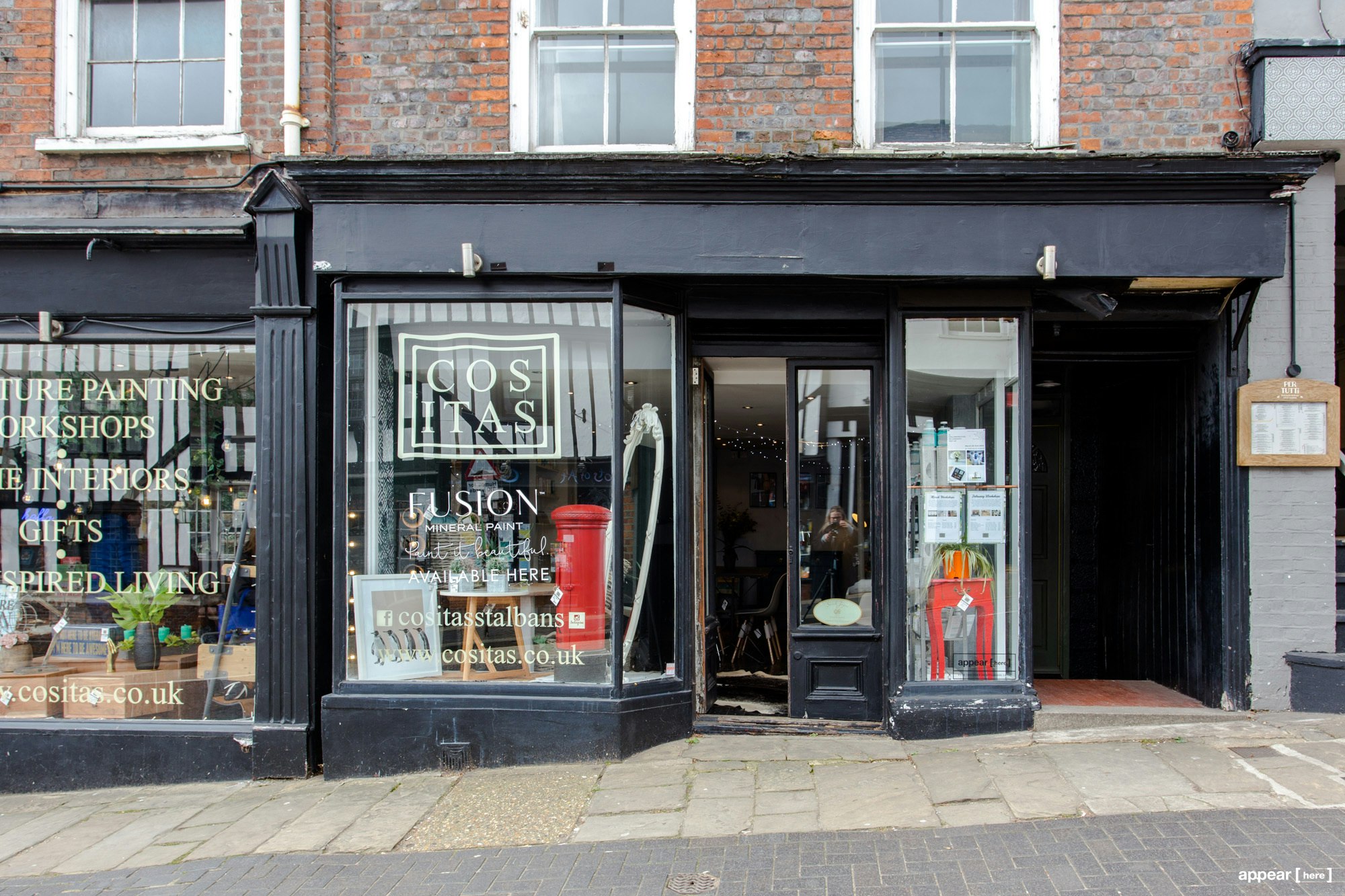 St Albans’ Cathedral Quarter encompasses all sorts of treasures, including a medieval clock tower, the UK’s oldest pub, and the pretty shopping street Holywell Hill, known for its speciality stores and cosy hangouts. Try out your idea among them by bringing it to this lovely space within an independent home interiors boutique, Cositas. You’ll have your own entrance, plus all the benefits of adjoining a well-established local business.