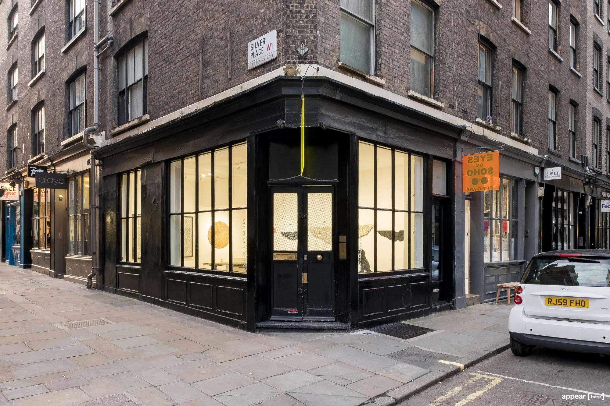 This full two-floor shop to rent on the corner of Ingestre Place and Silver Place is in the middle of Soho. This space features a black frontage and large sash windows on each side, giving plenty of natural light. With white walls, wooden floors and additional basement space perfect for storage or an office, this space is an ideal blank canvas to showcase your exciting idea.