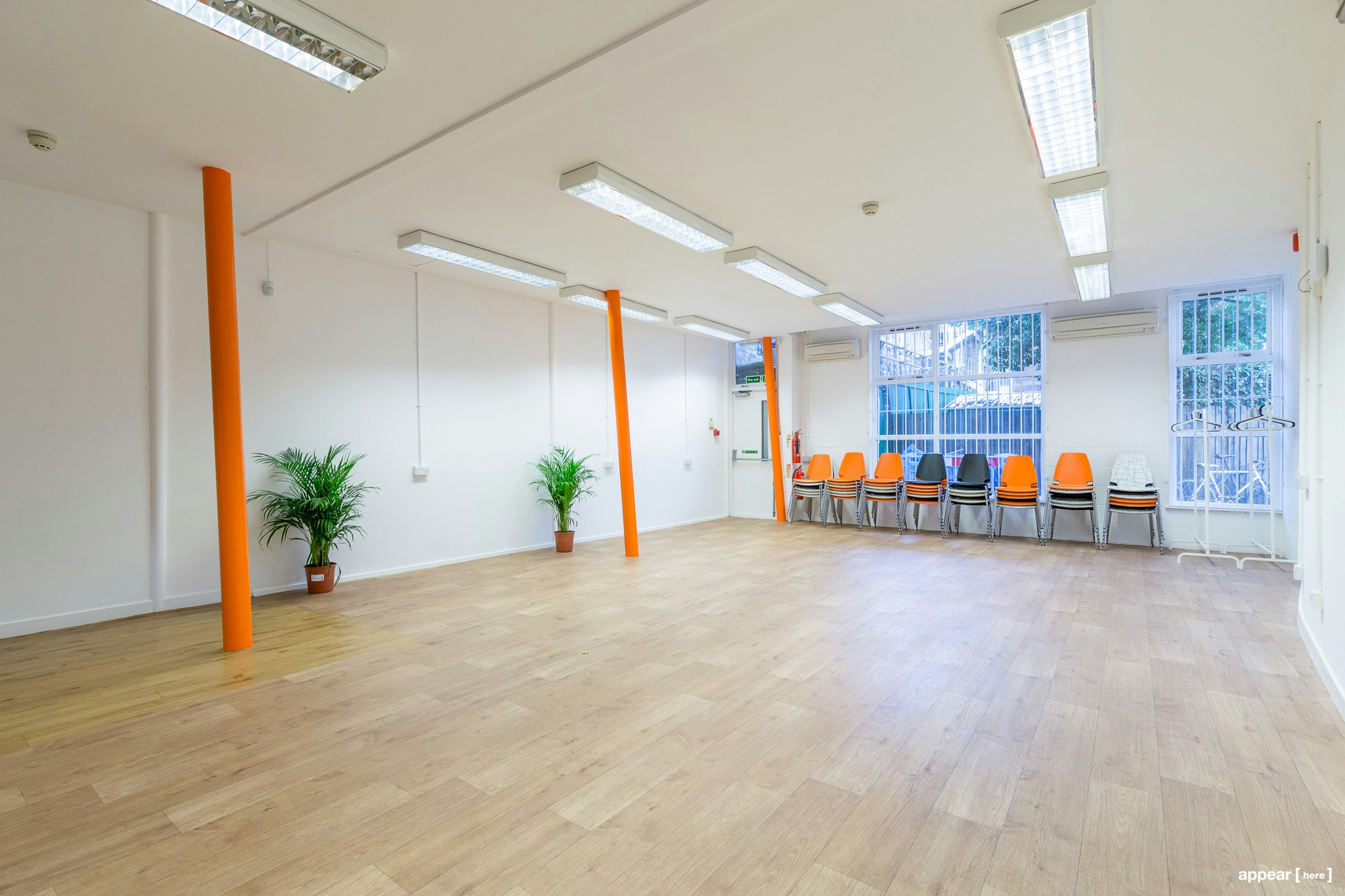 Off busy Mare Street in the heart of Hackney, London Lane is a quiet street of small businesses and independent studios leading to London Fields. Allia Future Business Centre is a business centre and hub for impact entrepreneurs. On the ground floor, this large, modern space for rent can be used for events and as a conference room only.
