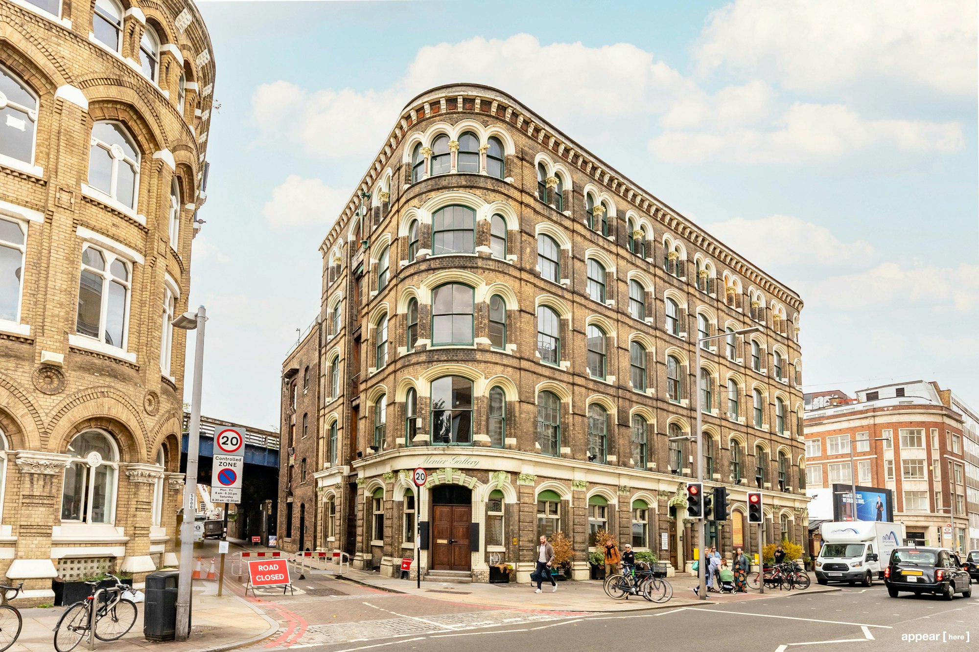 A diagonal door leads to a world of rich history. In an area renowned for its foodie status, this space to rent pinned between Borough Market and Flat Iron Square is one half of the expansive street level of a stunning building once home to a chocolate factory and now a part of an ever-changing, vibrant foodie and creative scene. With a wooden floor stamped with a million footfalls, beautiful old exposed brickwork, striking cast-iron support beams and even a spiral staircase leading mysteriously toward the second floor, the space oozes authentic character and charm.