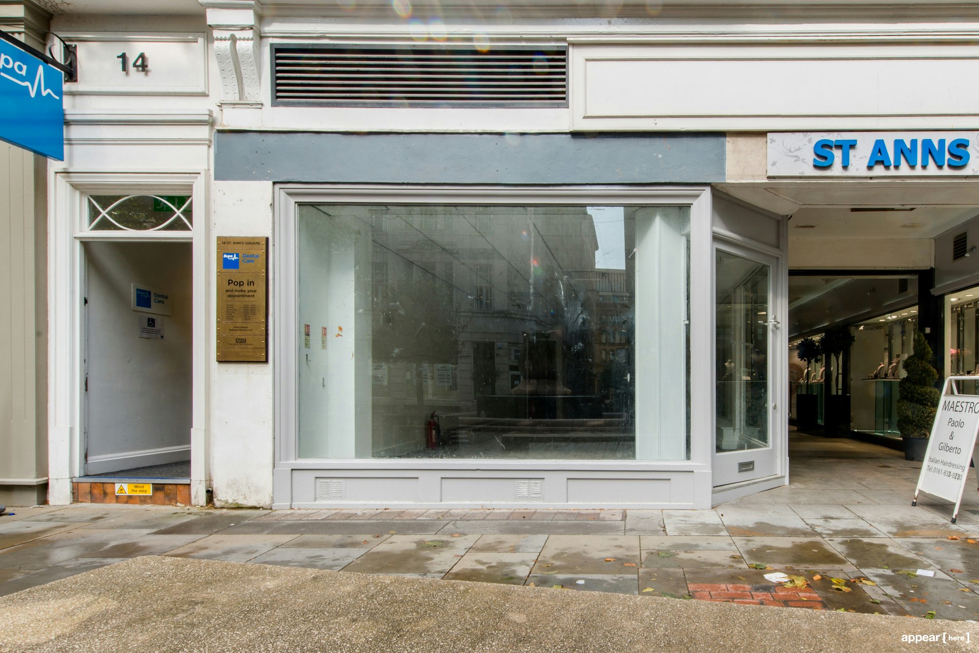 In the middle of Manchester’s busy shopping district, the pretty, pedestrianised St Ann’s Square was once the site of the city’s annual fair, and still plays host to regular events and markets. Looking out onto the square and the Grade II-listed Royal Exchange Theatre, this shop to let is at the front of St Anns Arcade, with large windows facing the street and the arcade itself.
