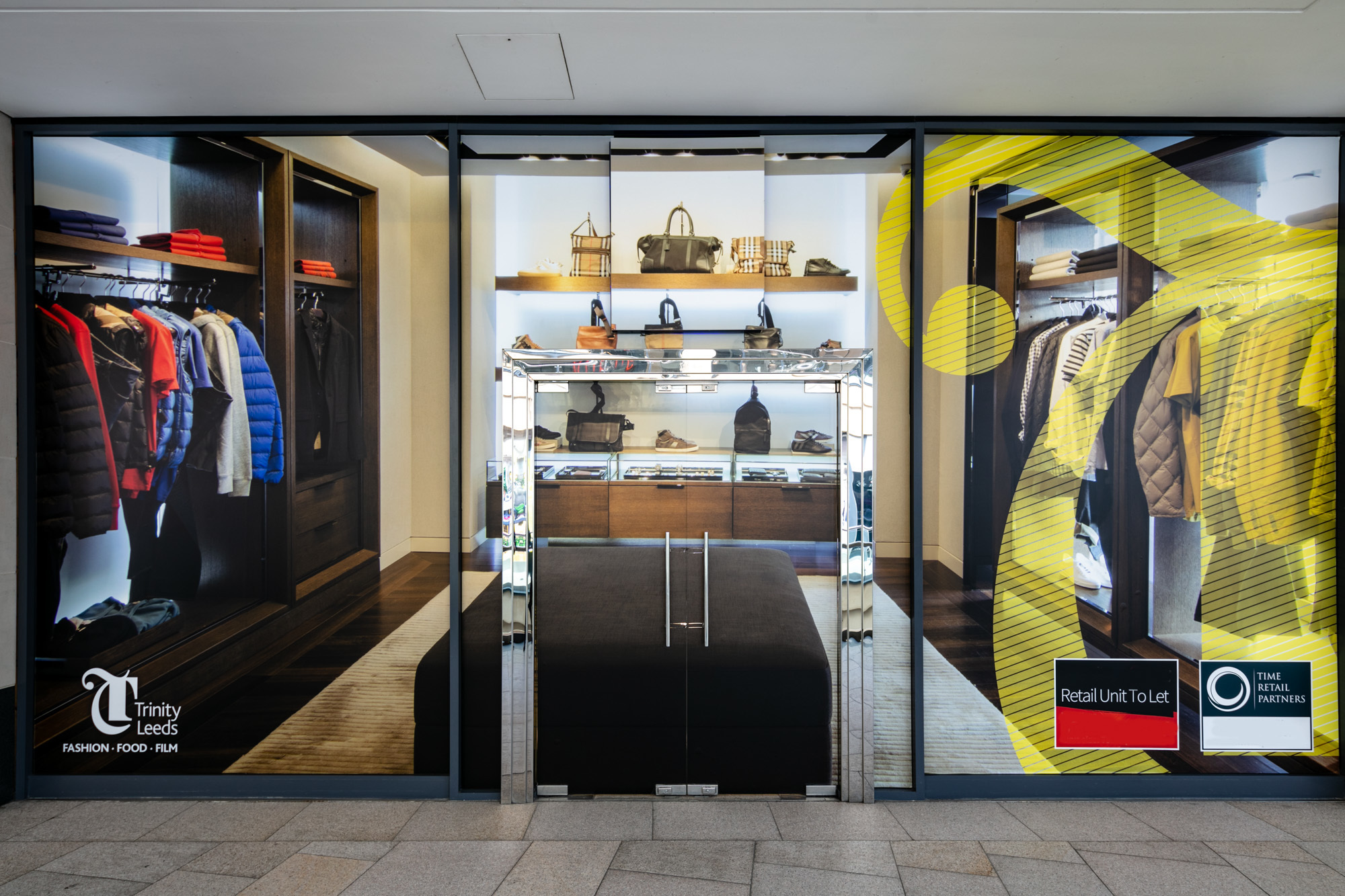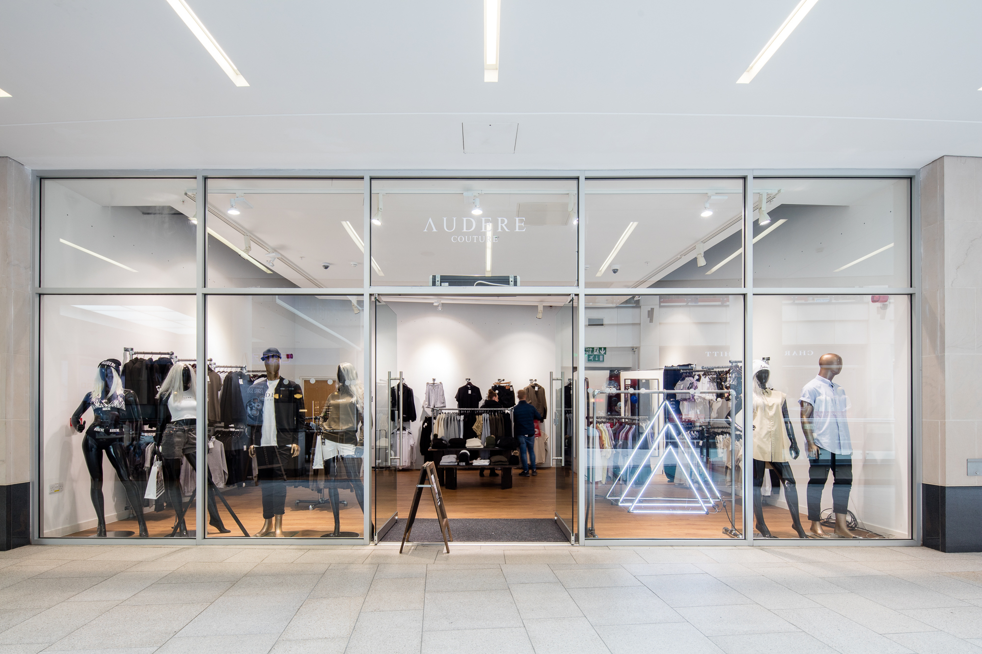 This full shop to rent is in Trinity Leeds, one of northern England’s largest shopping centres, in central Leeds. The space, over two floors, is large, with floor-to-ceiling front windows and gallery lighting that give it a clean, attractive air, while its location near one of the entrances to the shopping centre is perfect for attracting more customers. The shop also has good storage, dressing room and display facilities.